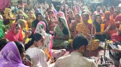 महिलाओं ने किया शांतिपूर्ण विरोध, भजन-कीर्तन के माध्यम से आवाज उठाई