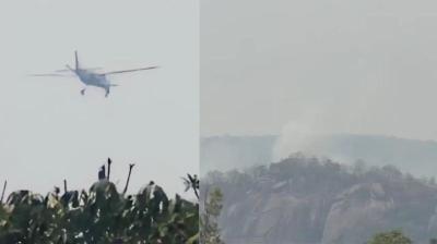 छत्तीसगढ़ ब्रेकिंग: जशपुर के नारायणपुर में विमान दुर्घटना, पहाड़ी से टकराने के बाद लगी आग।