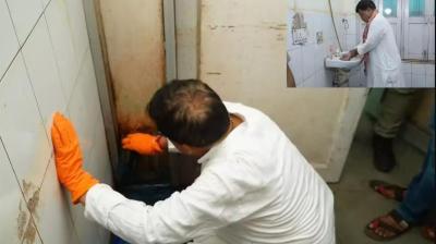 स्वास्थ्य सेवाओं पर नाराज मंत्री तोमर ने अस्पताल की पानी टंकी की खुद की सफाई